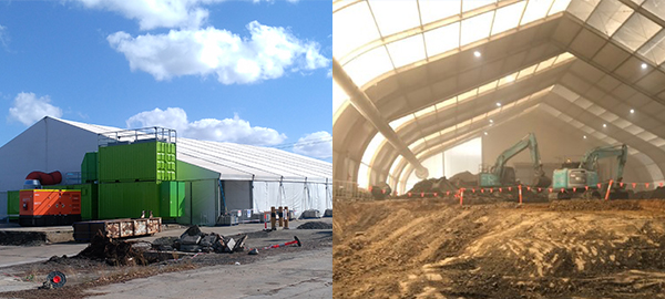 In the coming weeks we will commence the construction of odour control enclosures. The large tent-like structures will allow our contractors to safely start excavating the ground and treating soil, while also reducing odours in the location of the site works. We have provided an example of what the structures will resemble in the images below.