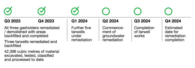 - Three tarwells completed to date with a further five in-ground structures (tarwells and fuel tanks) to be removed in the coming months.