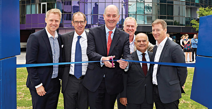 Australia’s first capital city public sculpture park, Monument Park, featuring the work of internationally-acclaimed Melbourne artist Callum Morton, was officially unveiled by The Hon Richard Wynne, Minister for Planning, and Andrew and Michael Buxton, founders of MAB Corporation, the company behind its creation on 10 December 2014.