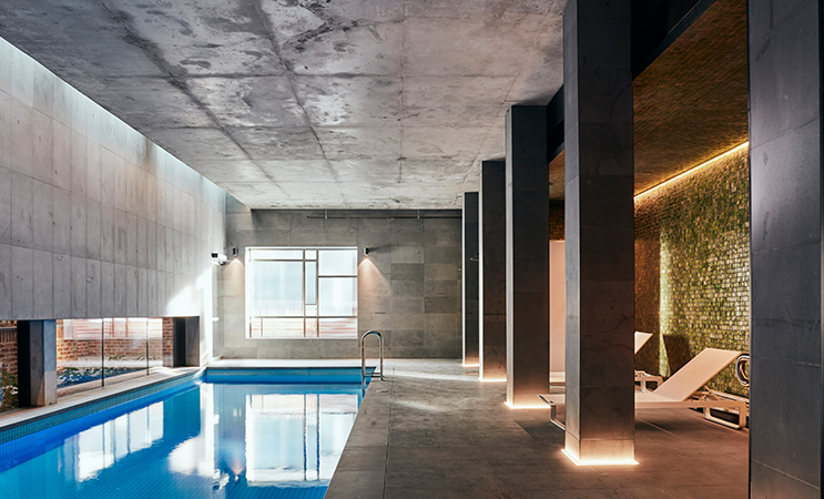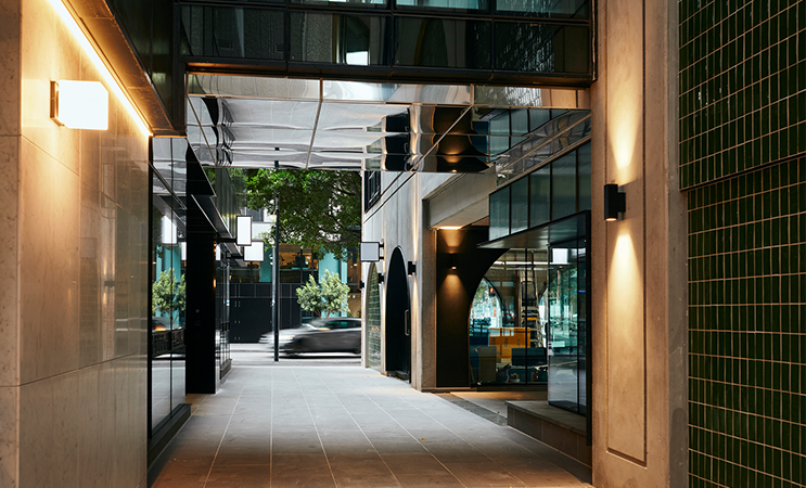 The design includes the distinctive red brick façade with arched windows of the commercial building while the residential lobby, corridor windows and bathrooms all include detailed lead lighting. Over the past few months, Escala has been welcoming its first residents.