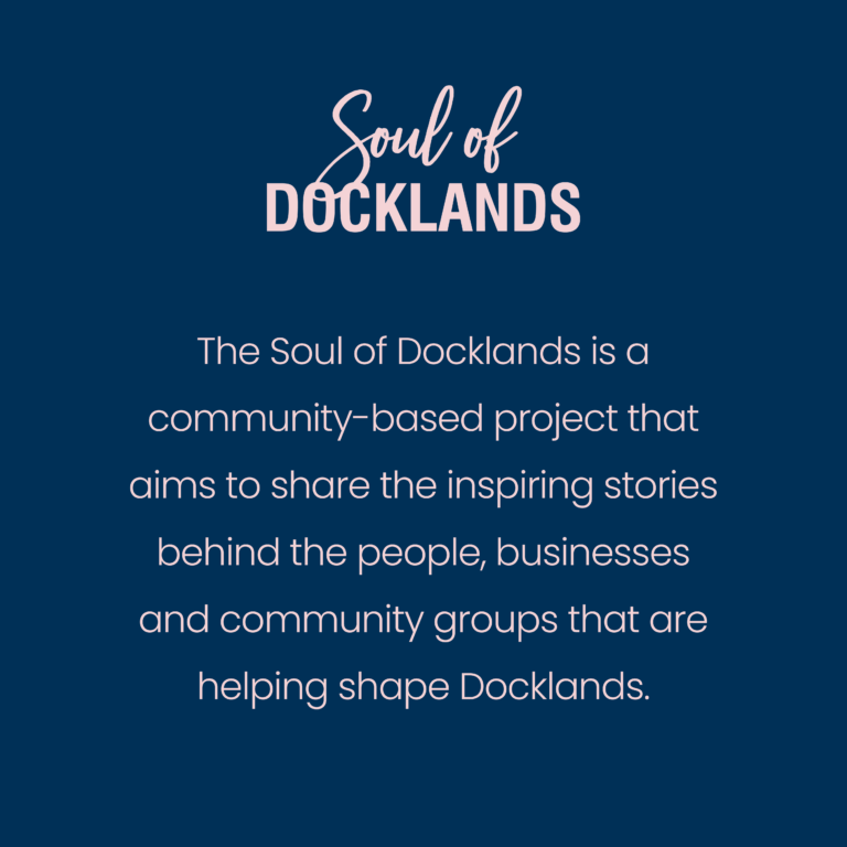 In 2023 the working group connected with the North & West Melbourne Neighbourhood Centre around a proposed project which sought to strengthen the profile of the local community by highlighting the people and businesses from the Docklands. It is from this, that the Soul of Docklands was created.