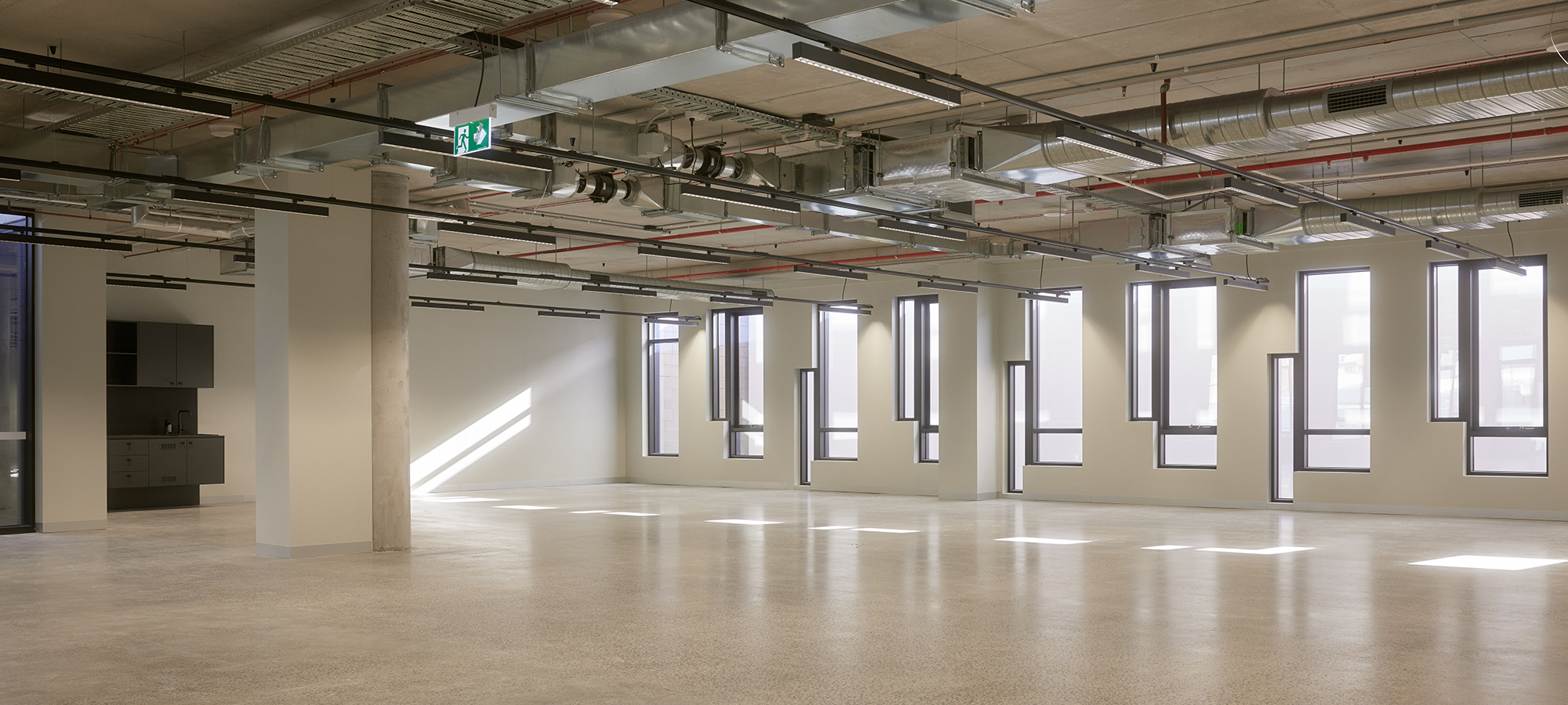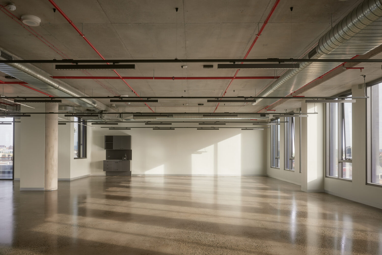 Designed by Plus Architecture, and inspired by the local industrial heritage, completed office suits include warm shell finishes, polished concrete flooring, and exposed ceilings. Workers will enjoy the communal landscaped rooftop with uninterrupted views to the city and Yarra trail.